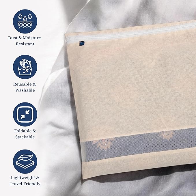 Keep your sarees, dresses, and special outfits safe and comfortable with these premium cotton storage bags. Crafted from soft, breathable cotton, each bag comes with a smooth metal zipper and a clear window so you can quickly see what’s inside without opening it. The spacious 16" × 14" size easily fits sarees, suits, gowns, kurtis, and most festive or formal wear. 👗💛